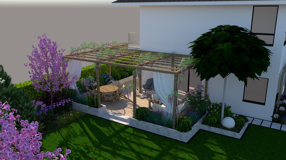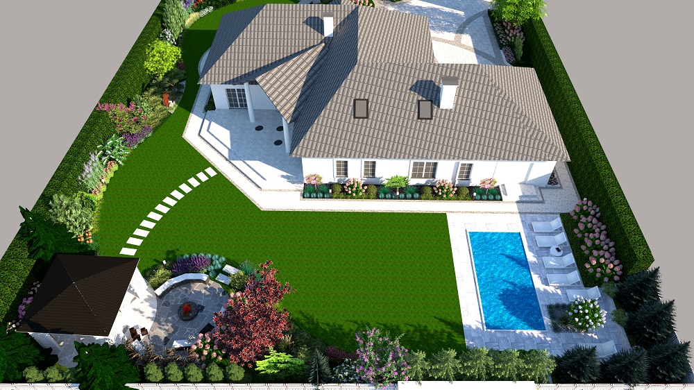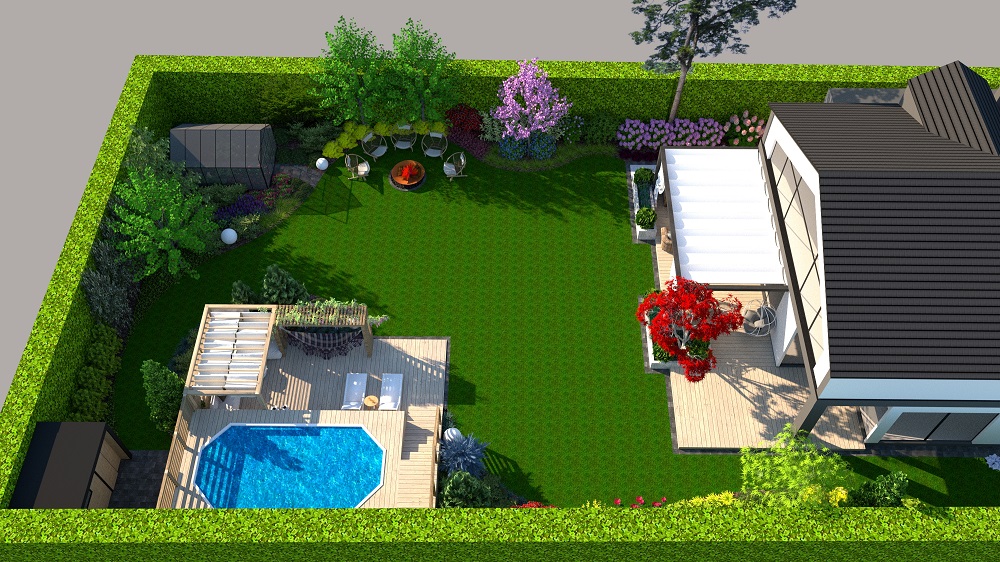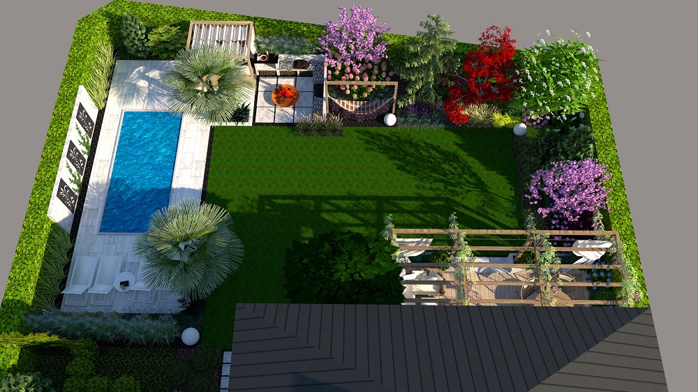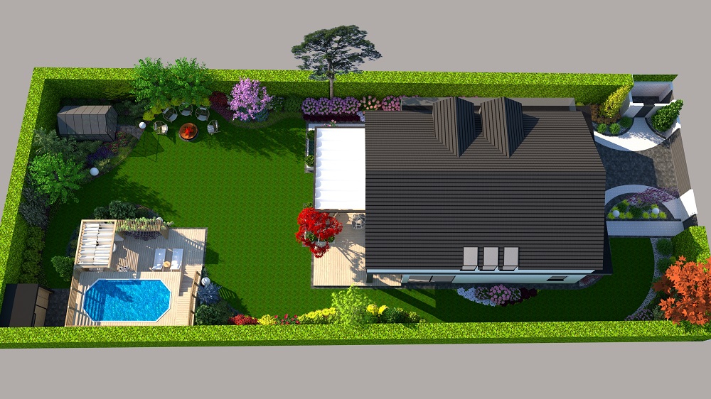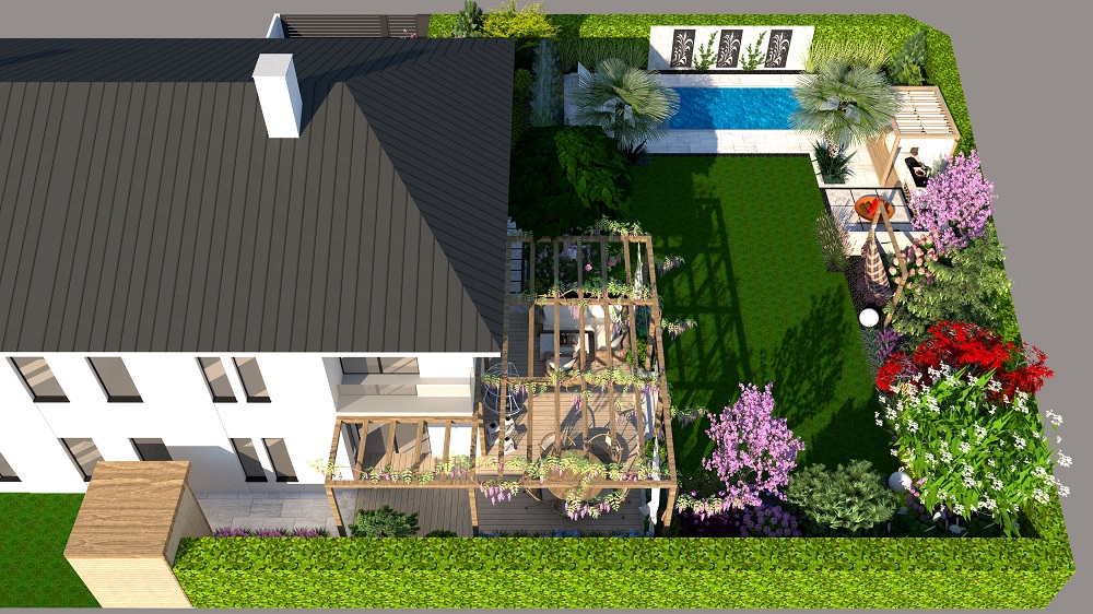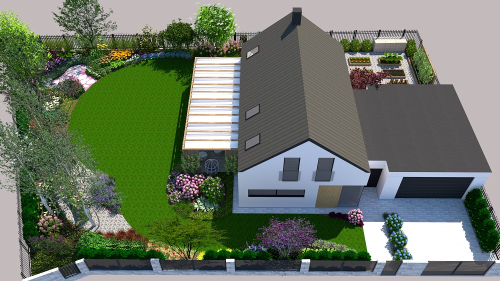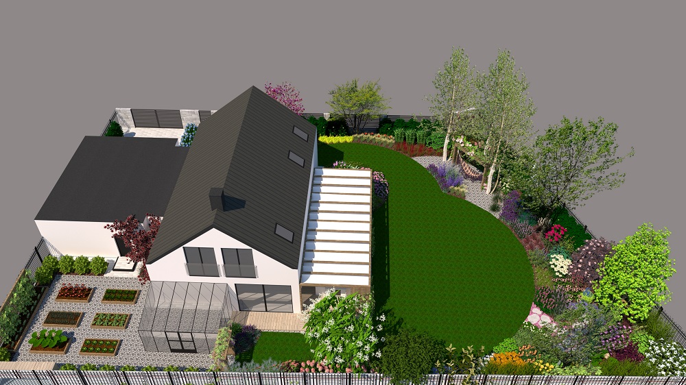 - realistyczne przedstawienie planowanego layoutu ogrodu;